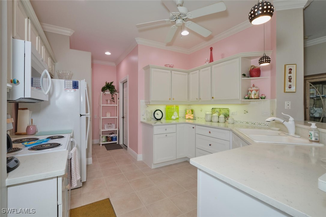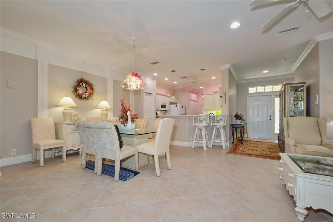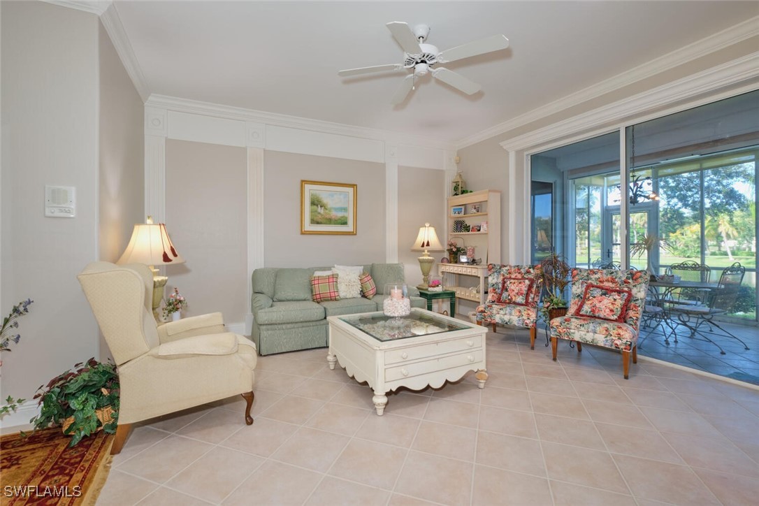3 bedroom attached villa in Lexington Country Club's Lake Village. Pay as you play golf. A short walk to the Island Club/Tiki Bar & Fitness center. Beautiful sunset & lake views from the lanai. This 'Dorset" is in move in condition and loaded with upgrades. Tile everywhere but the bedrooms. Crown Moldings. Plantation shutters. Storm shutters. Acrylic sliders on the lanai. Quartz counters in the kitchen. Long driveway that fits multiple cars. Tiled lanai.This unit is priced to sell.