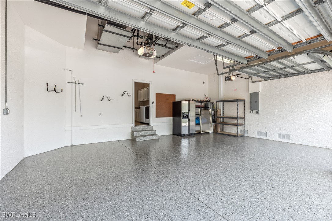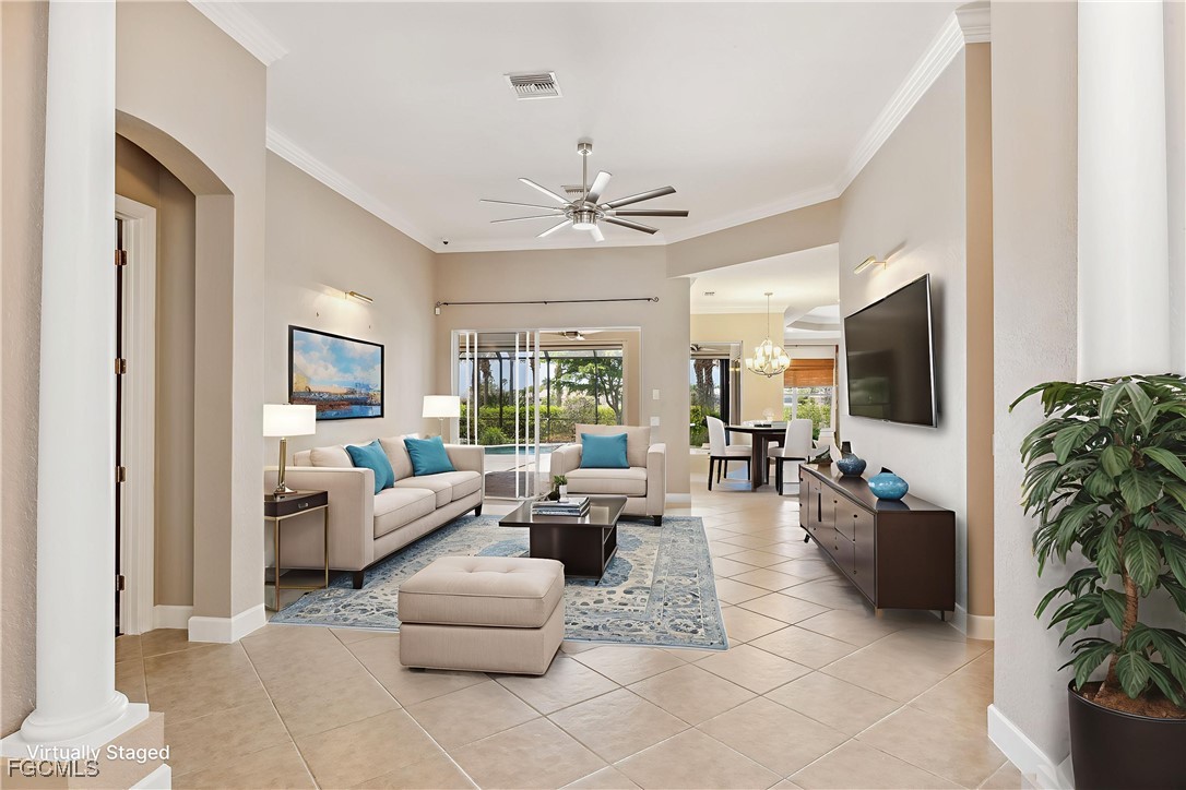 INCREDIBLY ATTRACTIVE, MOVE-IN READY HOME FEATURING VERY SPACIOUS THREE-BEDROOMS PLUS DEN (easily convertible to a 4th bedroom)/FOUR-BATHROOM POOL HOME WITH A 3-CAR GARAGE IN SOUTH FORT MYERS! NEW STONE COATED STEEL ROOF 2023! TWO AIR CONDITIONER COILS IN 2024! NEW HOT WATER HEATER 2024! POOL MOTOR 2022! LOW ELECTRIC BILL WITH WHOLE HOUSE SOLAR PANELS INSTALLED IN 2021. With over 3,200' of living space, a beautiful pool area with covered and extended open air lanai, this is a perfect home for a growing family and/or entertaining! The expansiveness of this home begins with the covered entry and the foyer, highlighted with decorative columns & tile. Lovely kitchen features elegant cherry cabinets with crown molding, dark granite counter tops, travertine backsplash, stainless steel appliances including a New Samsung refrigerator, built-in desk, center island with 2nd sink, large pantry and breakfast bar accommodating up to 4 large swivel bar stools! Casual or formal dining, you will have plenty of options - casual meals at the breakfast bar or in the nook overlooking the pool through the tinted mitered glass window or in the formal dining room! Many features to be pleased with: Crown Molding, Arched Doorways, Tray Ceilings, French Doors, Plantation Shutters, Dimmer Switches, Pool Bath! From the original floorplan, two bedrooms were combined to make one large bedroom - whether it is utilized as a bedroom or not, it's versatility is endless! In-home laundry room with upper & lower cabinets, hanging rack, Pool Bath, a Yard! Plus, for your family's safety & security, this home is equipped with a monitored security system, child barrier fence for the pool and full hurricane protection to include electric & accordion shutters! New pool heater and pump for the salt water pool with a fabulous auto-filling feature. This South Fort Myers community features a large swimming pool and spa, fitness center and social room for community & private social events. Great location - close to I-75, the airport, Gulf Coast Town Center, quick drive to Bonita/Naples and downtown Fort Myers. Residents have proved this is a popular walking and bike-riding community with easy access to US 41 and points North or South with public sidewalks. *** NO WATER IN HOUSE DURING STORMS due to its elevation!
