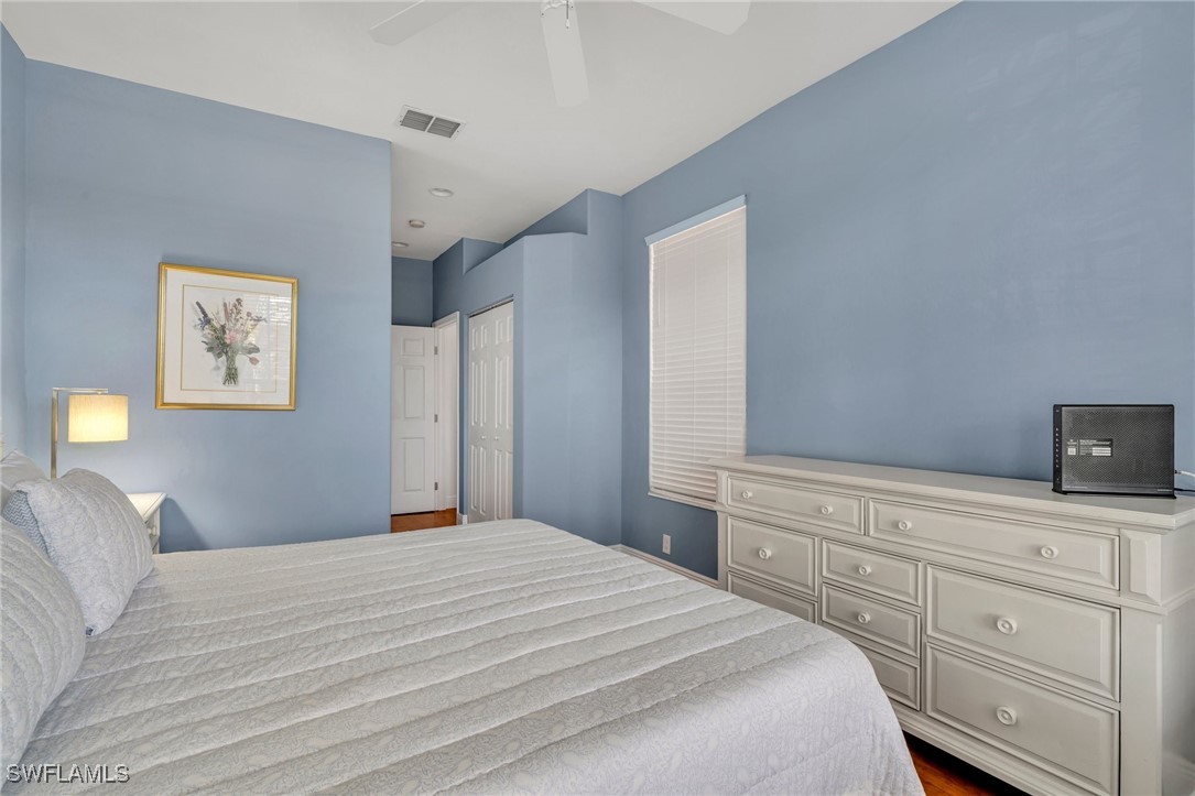 2 bed 2 bath remodeled Attached Villa Lexington Country Clubs Lake Village. With Pay as you play golf available. This fresh and modern 2-bedroom, 2-bathroom showcases renovations throughout. Step inside through the screened entry to discover newly painted interiors and premium luxury vinyl tile flooring in an elegant dark wood plank finish throughout. The kitchen stands out with sleek white cabinetry, quartz countertops, and the convenience of two pantries for abundant storage. The primary bedroom offers lake views and features two closets, including a walk-in. Its ensuite bathroom has a dual sink vanity and a frameless glass barn-door style shower enclosure with tile surround. The guest bathroom has been completely remodeled with a new vanity and a shower-tub combination featuring a tile surround. There's also a handy linen closet in the hallway. Another highlight is the extended lanai with acrylic sliders, creating a perfect spot to enjoy Florida's outdoor lifestyle while taking in the peaceful views. Lexington features plenty of walking and biking paths, tennis courts, and bocce, providing endless opportunities for recreation. When hunger strikes, visit the restaurant at the main clubhouse or browse the pro shop for your golfing essentials. 24 hour gated only minutes from the beaches, and just 1.2 Miles from HEALTHPARK Medical Center and Golisano Children's Hospital.