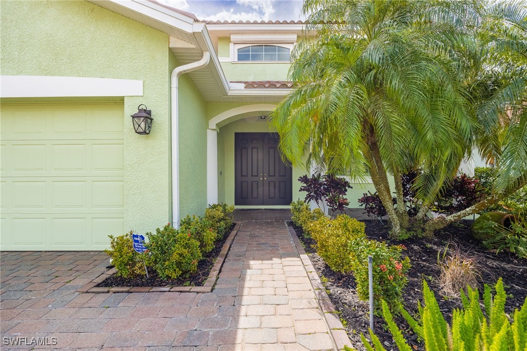 Come explore this beautiful home in Sandoval, Cape Coral’s most desirable gated community! This modern-designed 2-story home offers an open floor plan with 4 spacious bedrooms, a large den, 2.5 baths, and a 2-car garage. Plenty of room to entertain guests & Family by the heated pool, offering bright sunshine southern exposure, picturesque lake front views, plus a pool shower. This home offers many unique features that elevate its appeal. Grand double door entranceway, custom pavers, fresh paint inside/out, crown molding accents, and hardwood oak flooring. custom closets, updated bathrooms, all new plumbing & lighting fixtures, main line water filter to all sinks, ceiling fans throughout, oversized cabinets, bonus customized cabinets, plantation shutters, and even a deep luxury travertine kitchen sink. The kitchen has room for all to gather and features a hammered copper range exhaust hood, spice racks, thoughtful lighting, and bonus storage. The first-floor master suite includes a mini-split air conditioning unit for added comfort and direct access to the pool area. The master bathroom offers ample counter space, a large walk-in shower with double niches, two shower heads, and a corner bench seat. Upstairs, the home has been updated with hardwood oak treads and risers, complemented by wrought-iron spindles, giving the staircase a sleek, modern look. Additionally, there’s a built-in pet hotel/storage space underneath the staircase, complete with a doggy door, offering convenience for pet owners. Security of ring doorbell, cameras, energy-efficient high impact resistant windows (in front & back upper floor), both manual & electric roll down storm shutters on other openings. Peace of mind due to the HVAC maintenance contract (till 2027) to transfer to new Owners. Energy-efficient Barrel tile roof professionally installed in 2023. Large garage with professionally applied epoxy floor coating, along with a laundry sink. What else can you ask for? This home checks everything off your list! This home is the perfect blend of luxury, comfort, and functionality in one of Cape Coral's most sought-after communities. Don’t miss out—schedule your showing today! Some Pictures are VIRTUALLY STAGED