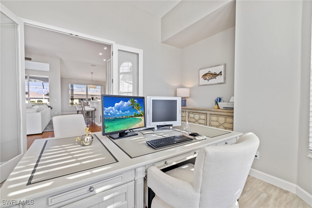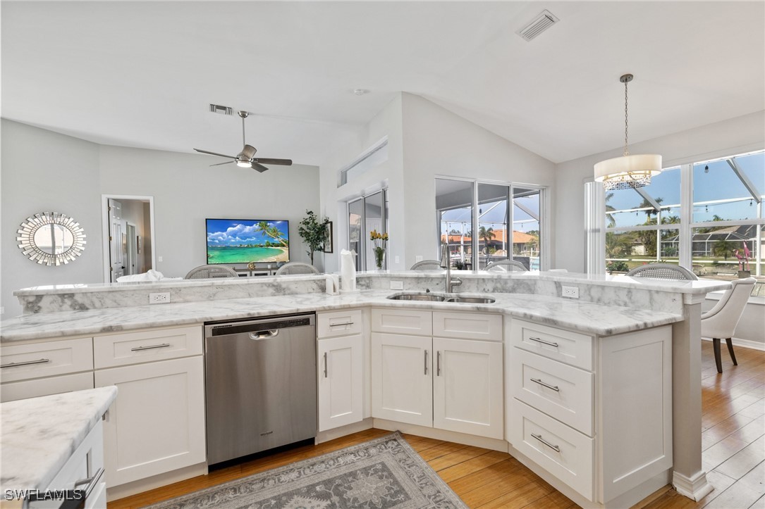 Amazing updated Gulf access home located outside of the flood zone! This stunning Gulf access home offers 3 bedrooms, 2 baths, plus a den, and is located in the desirable SE Cape Coral area, close to shopping, dining, and more. Situated outside of the flood zone, this home provides both convenience and peace of mind, NO FLOODING FROM RECENT HURRICANES IAN OR MILTON. Recent updates include a remodeled guest bathroom, a whole-home generator, a hot tub, and an outdoor kitchenette, perfect for entertaining. Inside, the home features a freshly painted interior and exterior, a travertine driveway, and an open great room with views of the heated pool and canal. The kitchen boasts granite countertops, a breakfast bar, newer appliances, and 42" cabinets. The split-bedroom floor plan places a spacious master suite with sliding glass doors to the pool area on one side and two guest bedrooms on the other. The master bath impresses with a large two-person shower, double-sink vanity, and soaking tub. The updated guest/pool bath leads to the oversized patio and beautifully landscaped yard. This beautifully furnished property is being sold turnkey, allowing you to move right in and start enjoying coastal living from day one! This home offers the ultimate Florida lifestyle—don't miss it!