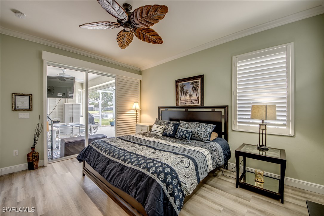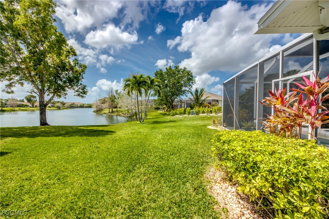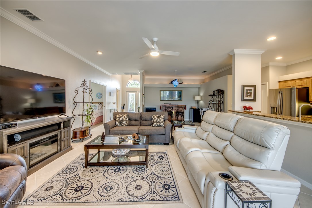 Tiled main living areas and luxury vinyl tile (LVT) in all bedrooms. Crown molding and Plantation shutters throughout. Electric screen on the two-car garage. Newer stainless appliances. Electric hurricane shutters on lanai and front door. Low HOA fees and No CDD. HOA fees include Cable, Internet, and amenities. This home received no flood damage from hurricanes. Ideally situated just off McGregor close to fine dining, shopping and a short drive to the beaches of Sanibel and Fort Myers beach.