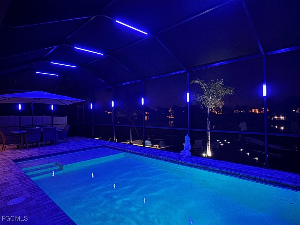 LUXURY WATERFRONT LIVING! This immaculately kept home has breathtaking canal views, GULF ACCESS and is located in the highly desirable Cape Coral area! The 10K LB boat lift accommodates boats up to 30 and is ready for your boat! The beautiful brick-paver driveway opens up to the 3-car garage, part of which has been renovated into extra living space. High ceilings, an open layout, and plenty of natural light create an airy and inviting atmosphere throughout the 2,000 sq ft home. The kitchen features all new top-of-the-line appliances, including a microwave drawer and range that offers air frying. It also offers granite countertops, soft-close drawers, and a walk-in pantry. The kitchen openly flows with the dining area and living room, perfect for entertaining. Both the living room and dining room walls open via slider doors to the fully-enclosed lanai that is perfect for entertaining guests, emphasizing Floridas indoor- outdoor living. The huge lanai includes custom lighting and a beautiful heated saltwater pool with a large sundeck area. This home benefits from being located at the end of a canal, meaning it's very wide and has low traffic, great for privacy from boaters and fellow neighbors. However, you will get visited by the occasional manatee! A Wear Deck boat dock expanding over 600 sq ft, installed March 2023, offers breathtaking sunrise and sunset views across the canal. The spacious master bedroom with 10 ft ceilings has large slider doors opening up to the lanai, and features two walk in closets, a toilet room, an expansive vanity with double sinks, a double-sided walk-in shower, and focal point soaker tub. The house also has 2 nicely-sized guest bedrooms, one with a private full bathroom attached. A 3rd full bathroom is available off the main living space that includes a secondary access door through the lanai. If you are looking for that perfect home with that WOW factor, then this piece of paradise is calling your name!