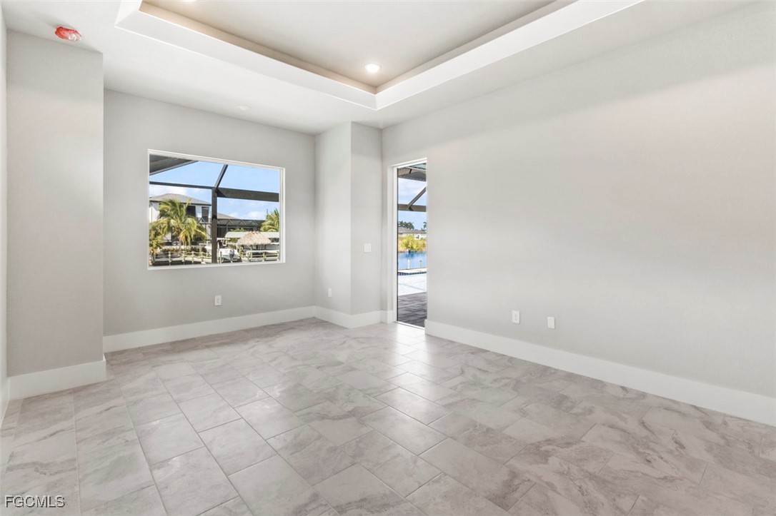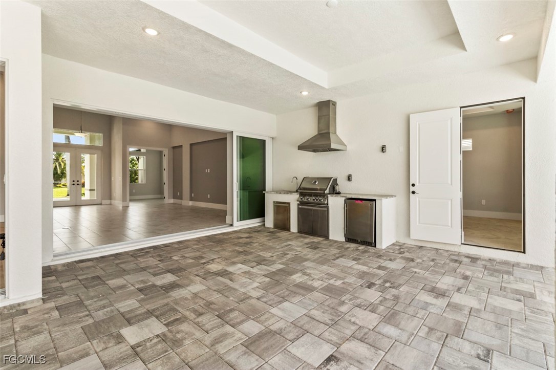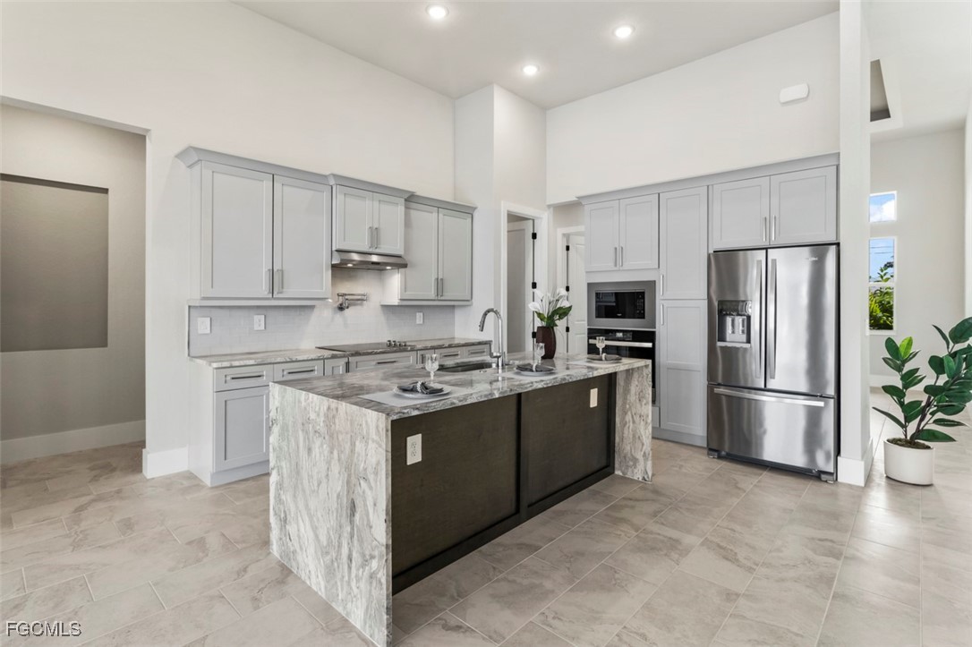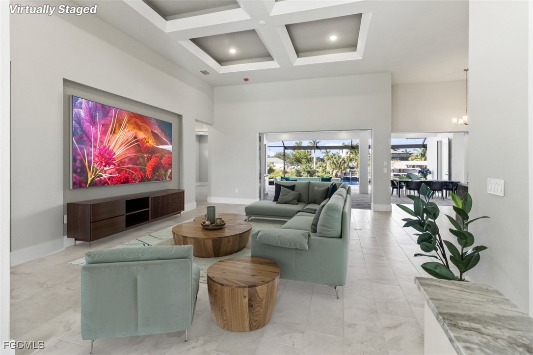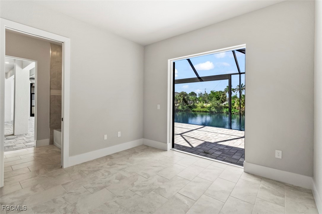 Stunning New Construction home on a wide direct sailboat gulf access lot! This exceptional never-lived -in home is perfectly positioned in one of Cape Coral's most sought-after neighborhoods. With 2611 sq. ft. of elegant living space, this residence offers the perfect blend of modern luxury and relaxed coastal living. It's designed to maximize water views and create the ultimate indoor-outdoor living experience. From the moment you walk through the front door, your eyes are immediately drawn to the sparkling infinity pool and spa, the outdoor kitchen, and the expansive lanai area overlooking the shimmering wide water canal. The pocket sliders disappear to create a seamless flow between the open-concept interior and your private waterfront oasis-perfect for entertaining or simply enjoying the Florida sunshine and breathtaking sunsets. The saltwater pool and spa are with a state-of-the-art-heating and cooling system ensuring year-round comfort, while the outdoor shower and outdoor kitchen make alfresco living effortless. The home features 4 bedrooms plus a den and 3 baths with three bedrooms offering en-suite baths and one also serving as a convenient pool bath. 3 car garage, the kitchen features beautiful quartz waterfall countertops, stainless steel appliances, and custom cabinetry. Tile throughout the entire home and everything in neutral colors so the new owners can bring in any colors they prefer with their own decor. The picture-screened enclosure frames panoramic water views while maintaining an airy, open feel.