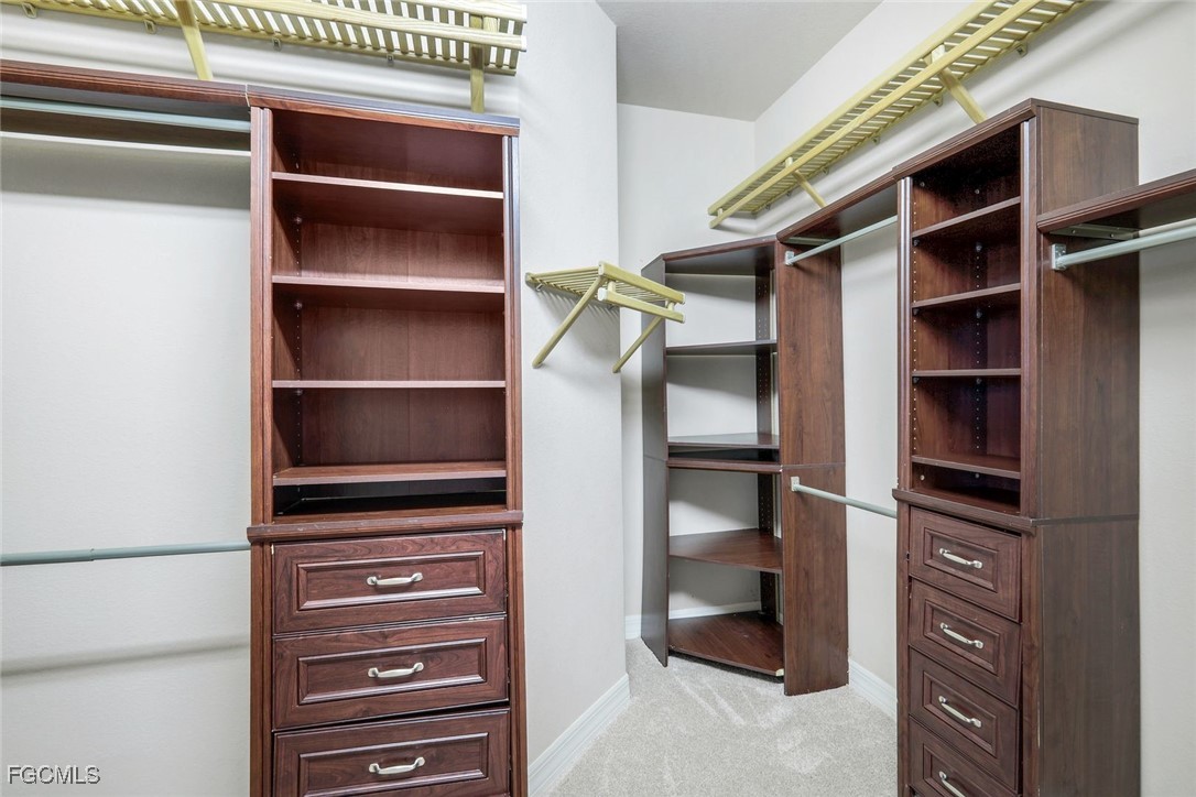The spacious primary suite offers a private retreat with French doors to the pool, abundant natural light, and a luxurious ensuite bath featuring a soaking tub, a large walk-through shower, dual vanities, and two walk-in closets.