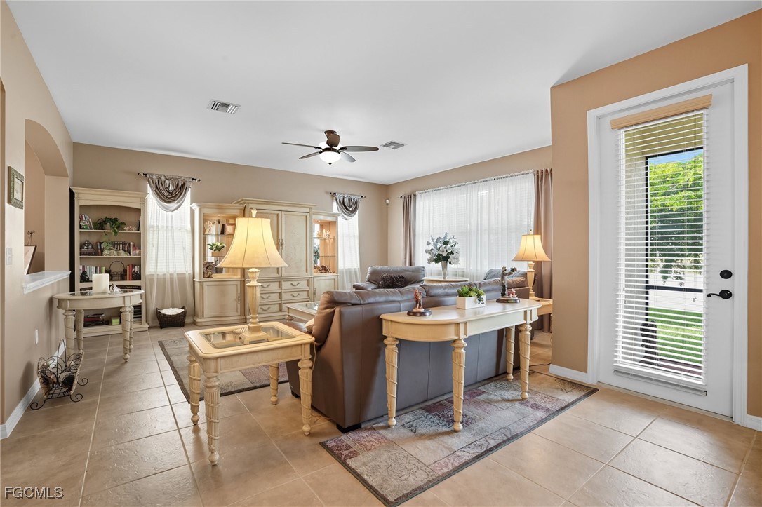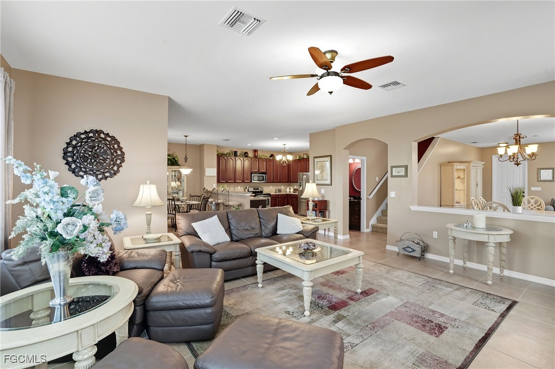 Welcome to Catalina Isles! This stunning 2-story single-family home with a beautiful water view offers 5 bedrooms, 3.5 baths, and over 3,100 sq ft of living space. Offering formal living/dining, plus family room, you will fall in love with the open feeling! Stainless appliances, dark wood cabinets, plenty of counter space and cabinetry, with a walk-in pantry. NEW A/C IN 2025! Amazing Lake views from the breakfast and family room, plus a screened in lanai. Plenty of room for a pool! An upstairs loft area ideal space for a home office. Master suite entertains a large sitting area, dual primary bathrooms with walk through shower and two walk in closets. Half bath conveniently located on the first floor. Catalina Isles amenities include; community pool, spa, playground, fitness center and BBQ grills. Conveniently located near HealthPark and Golisano Children's Hospital, and just minutes from Fort Myers Beach and Sanibel. This spacious home is the perfect blend of luxury and comfort. This one won’t last!