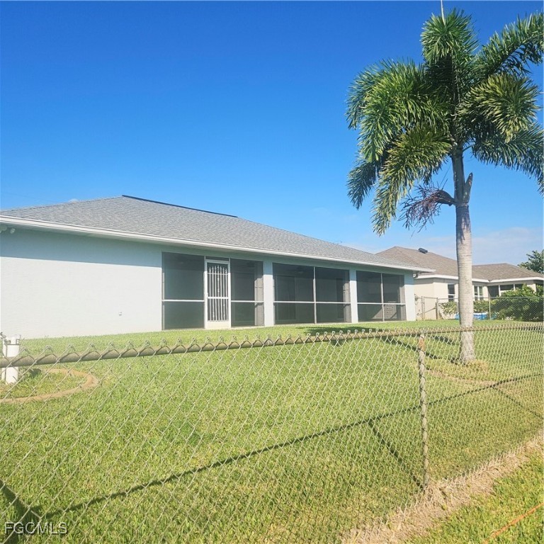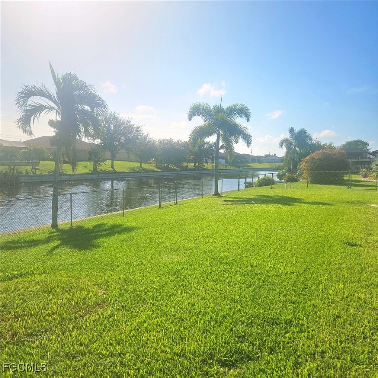 This is a beautiful, very well maintained, move-in ready, open concept, 3 bedroom, 2 bath, 2 car garage in desirable SW Cape ! Enjoy your morning coffee on the oversized eastern facing lanai. Located in a great friendly established neighborhood with many amenities found right in your neighborhood. Fully fenced yard on a nice canal with plenty of room for a pool ! The home has roll down shutters, tile throughout, cathedral ceilings, wide open great room and kitchen space. Screened front porch, partial outdoor kitchen, split floor plan with sliders from master, dining and guest room round out this amazing immaculate home! Oh a few more things! Newer roof , AC & Water Heater! Not in flood zone , great hurricane protection for best deductions in premium & city water & sewer services with zero balance. This home has had only 1 owner & pride of ownership definitely shows !