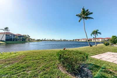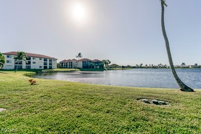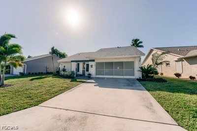 Amazing opportunity to own in Cinnamon Cove. Resort living. This home sits right on the "Big" lake. Cinnamon Cove is situated close to all the beaches, Ft. Myers and Sanibel, shopping restaurants, etc. This Home has been renovated with all new appliances, flooring, countertops, AC & water heater. Marble countertops, luxury vinyl and marble flooring, washer, dryer hook-up for the sink. Home is 9 feet above sea level, 12 ft. ceilings, Attic above the garage with attic fan. Living room flows into the large sunroom (approx. 180 sq. ft.) where you can delight in the unobstructed tranquil water view. Roll down shutters for extra privacy.
