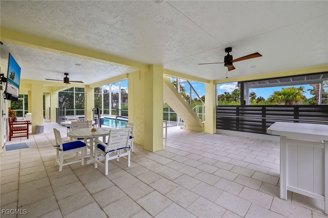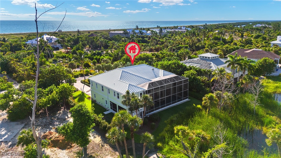 Experience island living at its finest with this stunning contemporary home, where style, luxury, and durability come together effortlessly. From your first step into the front foyer, you will know you are home with the beautiful open stairway, or elevator access, leading to a spacious living room that provides sweeping views of natural water and wildlife habitat. The beautifully finished kitchen will excite any home chef with the large cooktop, built in microwave, oven and warming drawer and the prep island with sink adds to the incredible efficiency. Beautiful wood cabinetry and granite countertops deliver the fine coastal elegance found in the kitchen and throughout the home. The primary suite is situated with privacy and comfort in mind with lovely views and beautiful natural light from the many windows. A custom closet/dressing room and well-defined bathroom with walk-in shower and soaking tub provide added sanctuary. Two guest bedrooms include on-suite baths, the third guest bedroom is being used as an office with adjacent full bath. This elevated home was designed and built in 2017 with resiliency and comfort in mind using fully concrete construction, standing seam metal roof, all impact window and doors and proven custom flood panels. An 1,800 sf 3 + car garage, large upper lanai, pool, and pool side area adds to the generous feel of this home. The private beach is just 2 minutes by golf cart or 5 minutes on foot.