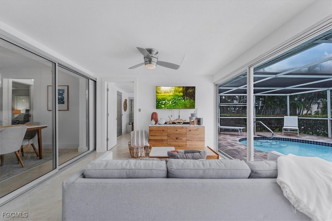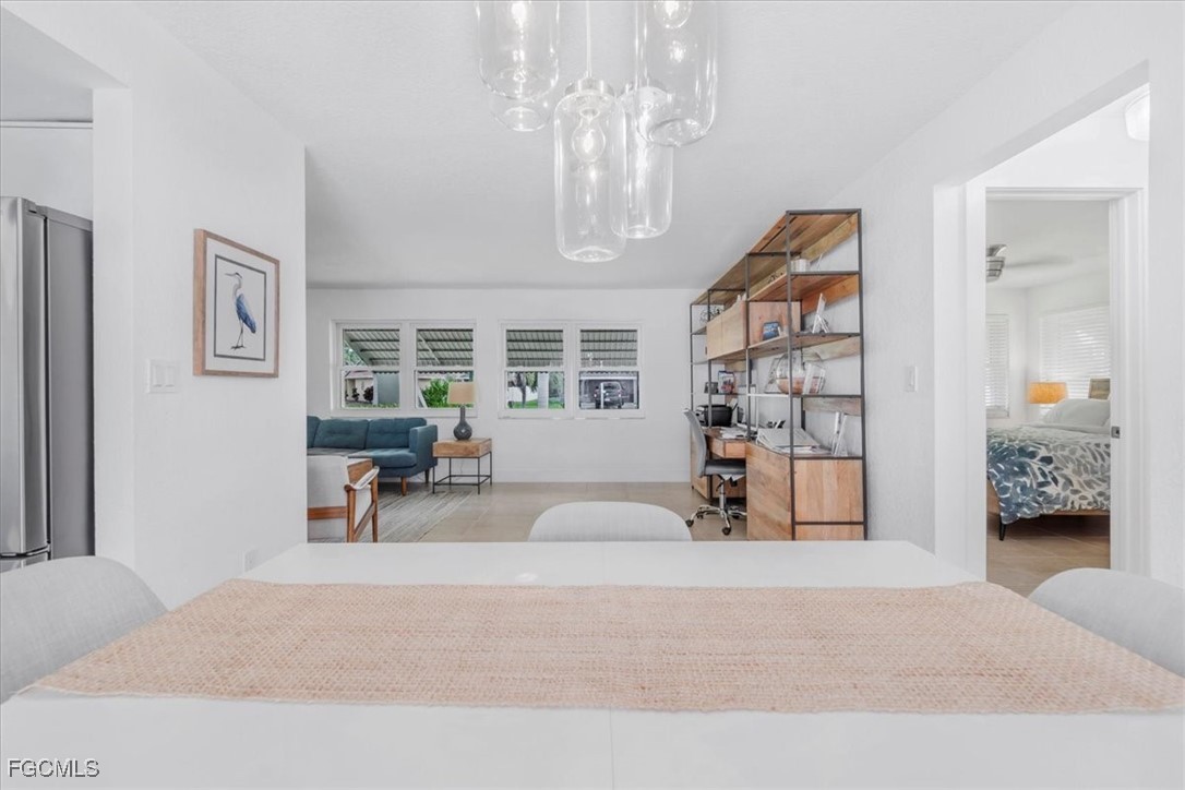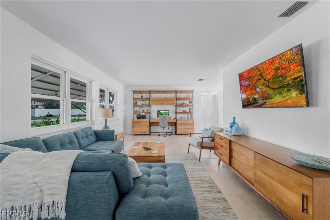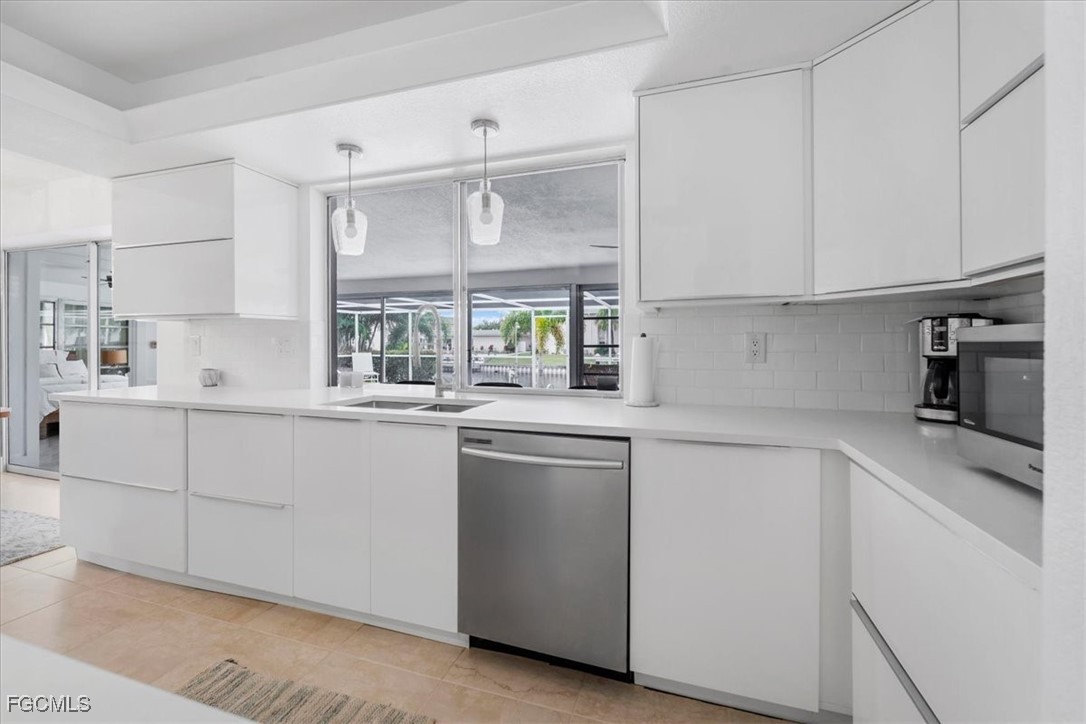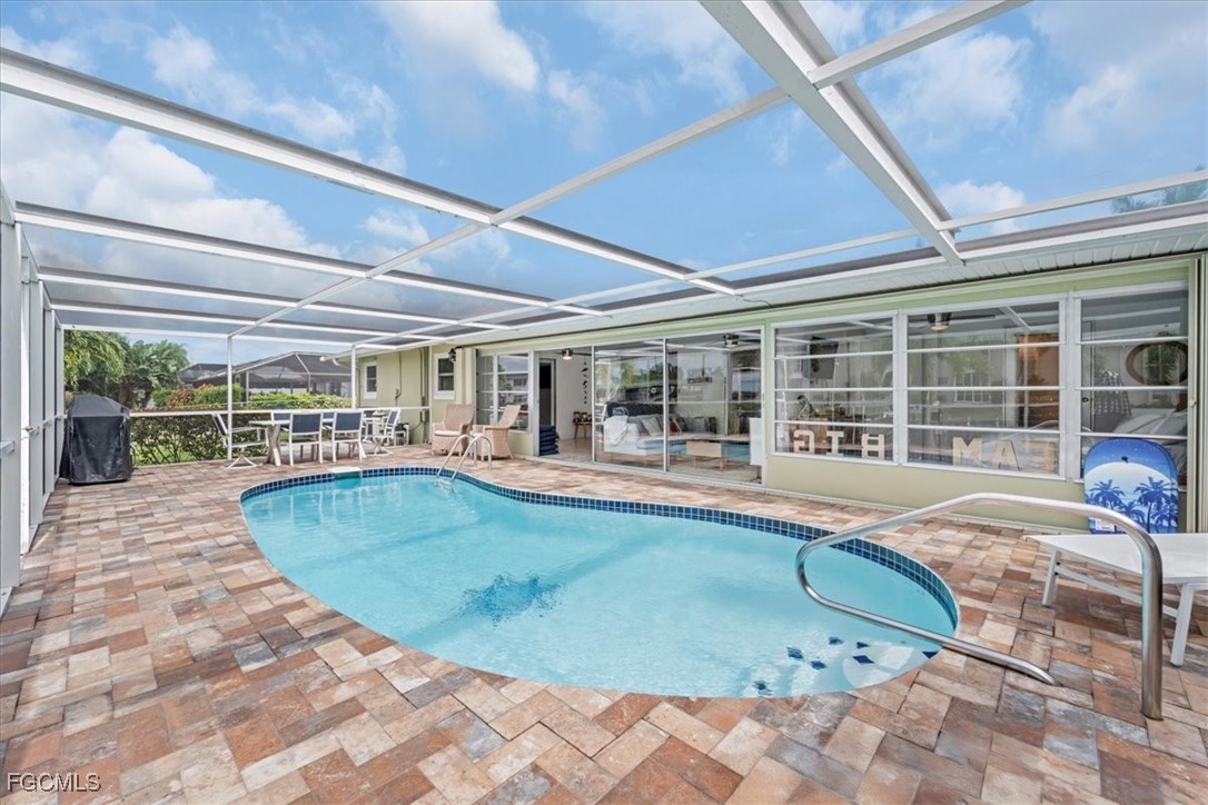 Experience the Ultimate Waterfront Lifestyle in Savona! Discover this stunning direct Gulf-access pool home perfectly positioned on one of Cape Coral’s most desirable canals—just minutes from the river and Downtown Cape Coral. Nestled in the exclusive Savona community, this modern/retro coastal retreat offers the ideal blend of luxury, comfort, and true Florida living. Completely remodeled with contemporary designer finishes, this 3-bedroom, 2-bath home impresses from the moment you step inside. The open-concept layout showcases tile flooring, an exquisite kitchen with quartz countertops, sleek cabinetry, stainless steel appliances, and tray ceilings enhanced with color-changing LED lighting. The expansive living area flows seamlessly to the outdoor oasis, where panoramic water views create the perfect backdrop for entertaining or relaxing by the heated pool. The primary suite is a private sanctuary with a beautifully renovated bath, dual sinks, walk-in shower, and a custom walk-in closet. Guest rooms are spacious and inviting—each with a serene water view. The third flexable bedroom, while not under A/C and without a built-in closet, is bright, airy, and ideal as a guest retreat, creative studio, or waterside office—boasting exceptional canal views. Step outside to your private boater’s paradise: two lifts (boat & Jet Ski, added 2020), a paver pool deck, and a dock perfect for fishing or soaking in the brilliant western sunsets. Enjoy quick, unrestricted sailboat access to open Gulf waters—no bridges, no locks, just pure boating freedom. Additional upgrades per Seller include a new roof (2022), new A/C (2022), impact windows, and storm shutters for peace of mind. (No flooding during Ian) Conveniently located near premier dining, boutique shopping, and both Cape Coral bridges for easy access to Downtown Fort Myers, beaches, and the islands by car or by boat. Live your waterfront dream in Savona—where luxury meets the Gulf.