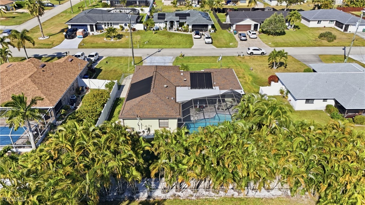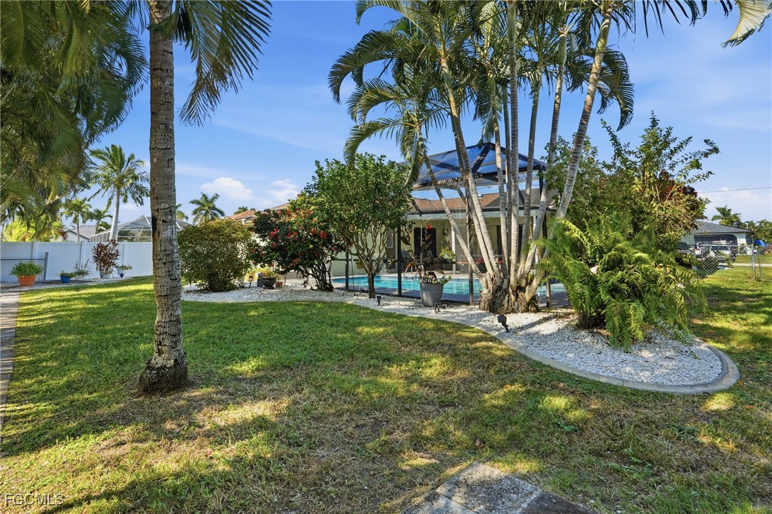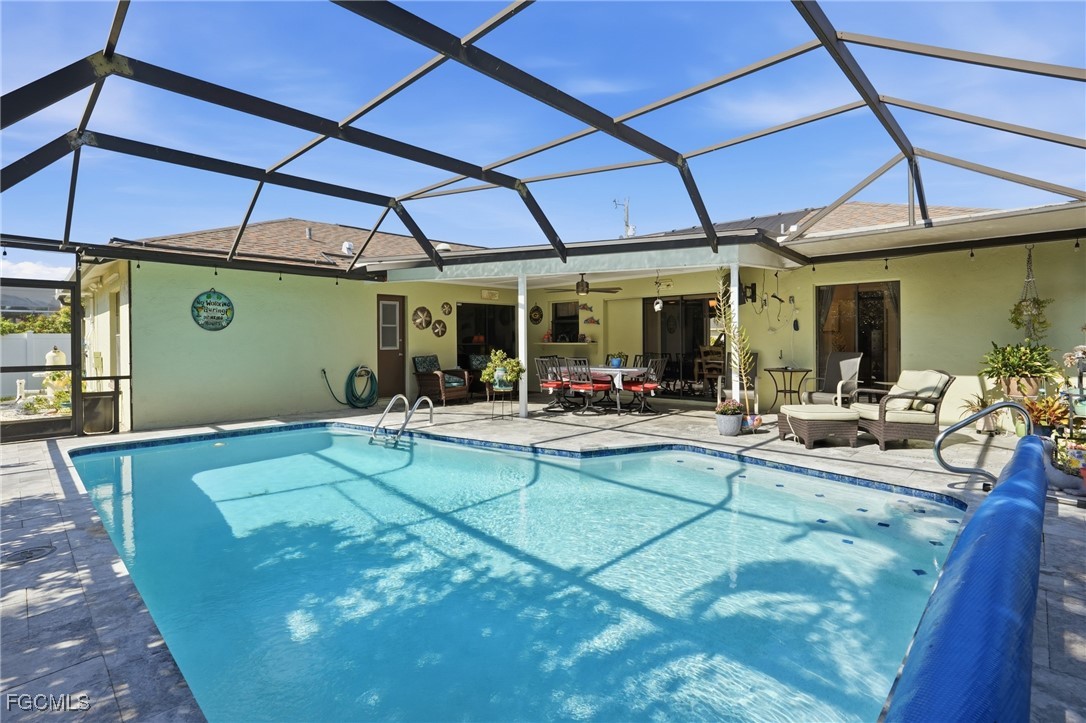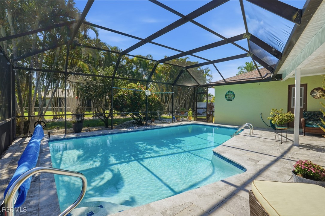 Welcome to your Southern exposure 3 bedroom, 2 bath pool home in the highly desired Southwest Cape Coral area, offering plank tile flooring throughout, granite kitchen counters, stainless steel appliances, and split bedrooms with walk-in closets. Updated bathrooms provide direct access to the screened lanai, where you'll enjoy plenty of room under truss for outdoor dining and living. The solar-heated saltwater pool has been recently renovated with a full resurfacing, decorative accent tile, and new lanai pavers. Lush tropical landscaping along the back of the home provides privacy and a serene backdrop. Additional updates include a new A/C, tile roof, owned solar panels, and hurricane-impact garage door. Ideally located near top dining, shopping, and waterfront entertainment, this move-in ready home blends comfort, style, and the Florida lifestyle in one of Cape Coral’s most sought-after neighborhoods.