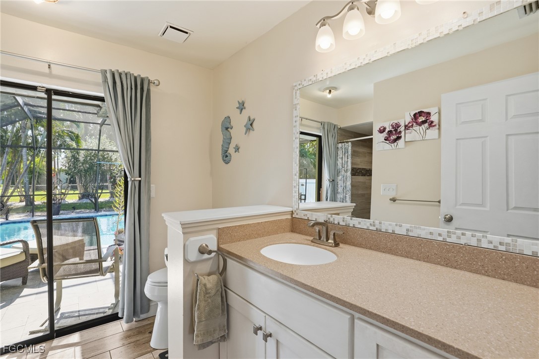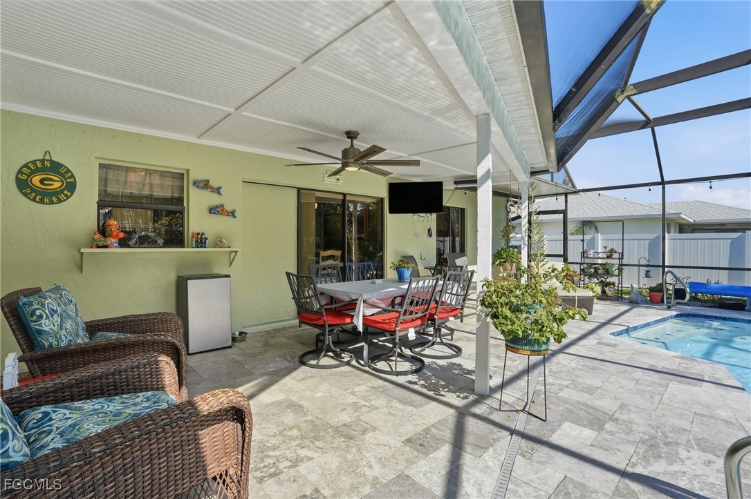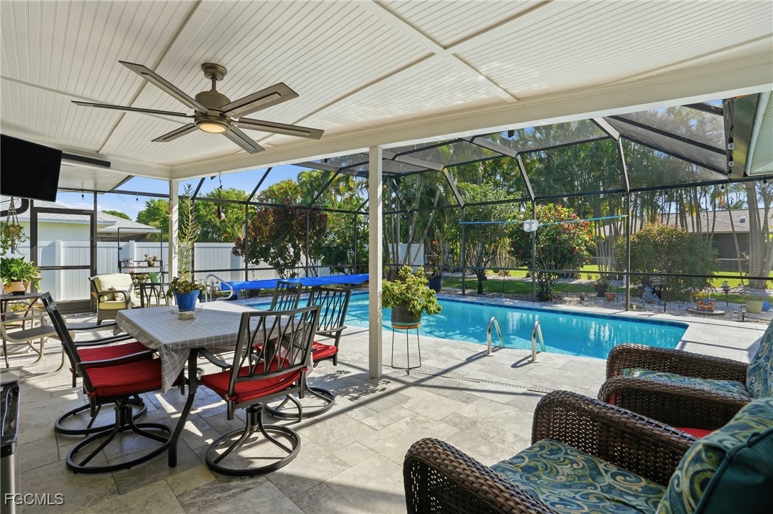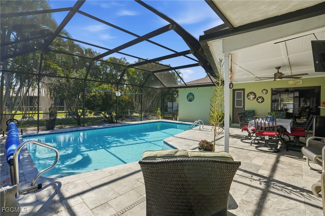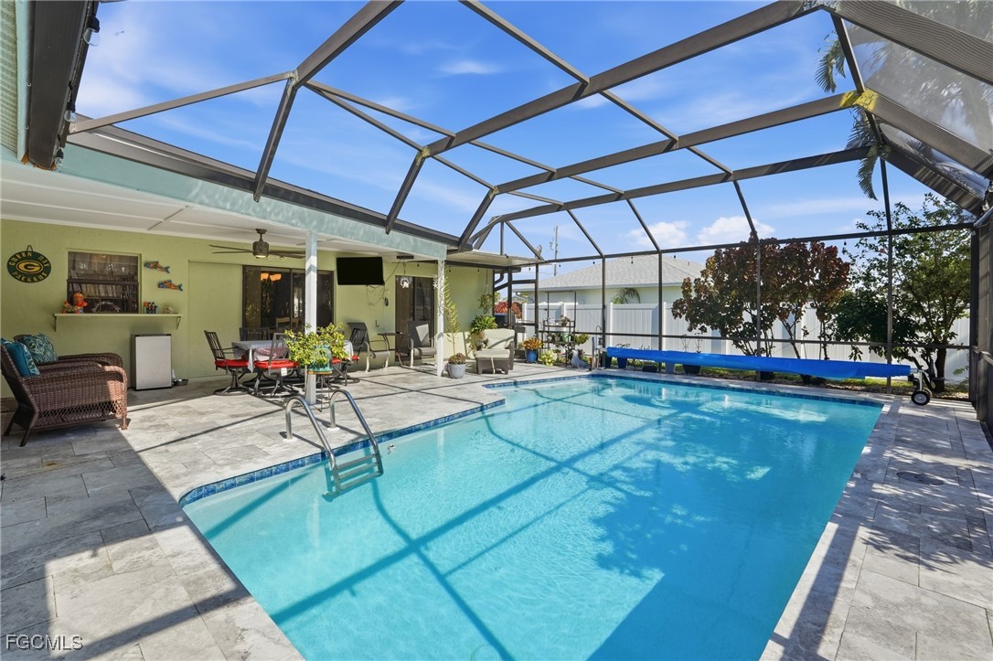 Welcome to your Southern exposure 3 bedroom, 2 bath pool home in the highly desired Southwest Cape Coral area, offering plank tile flooring throughout, granite kitchen counters, stainless steel appliances, and split bedrooms with walk-in closets. Updated bathrooms provide direct access to the screened lanai, where you'll enjoy plenty of room under truss for outdoor dining and living. The solar-heated saltwater pool has been recently renovated with a full resurfacing, decorative accent tile, and new lanai pavers. Lush tropical landscaping along the back of the home provides privacy and a serene backdrop. Additional updates include a new A/C, tile roof, owned solar panels, and hurricane-impact garage door. Ideally located near top dining, shopping, and waterfront entertainment, this move-in ready home blends comfort, style, and the Florida lifestyle in one of Cape Coral’s most sought-after neighborhoods.