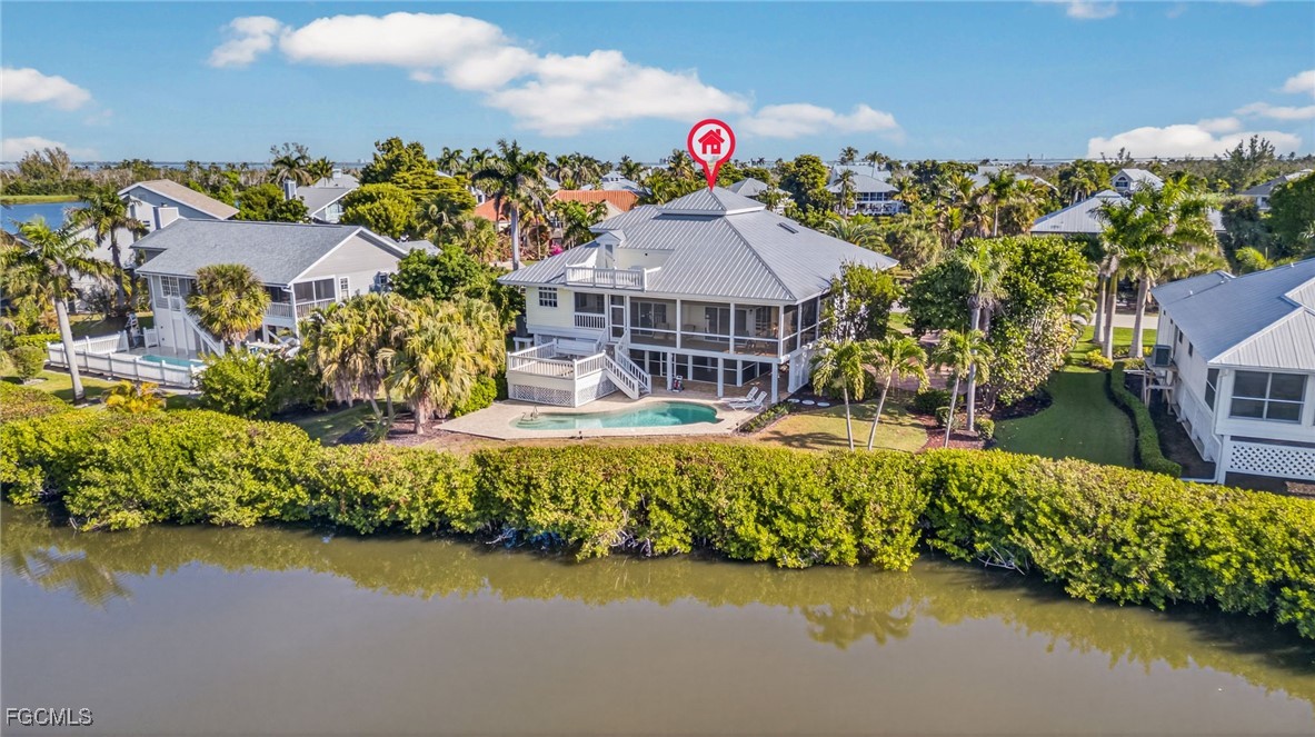 Tucked away on a quiet cul de sac in the sought after Dunes community on Sanibel Island, this elevated four bedroom, three bath home offers privacy, space, and classic island charm. Surrounded by lush tropical landscaping, the exterior features wide wraparound porches, multiple outdoor living areas, and a private pool, creating a true island retreat.