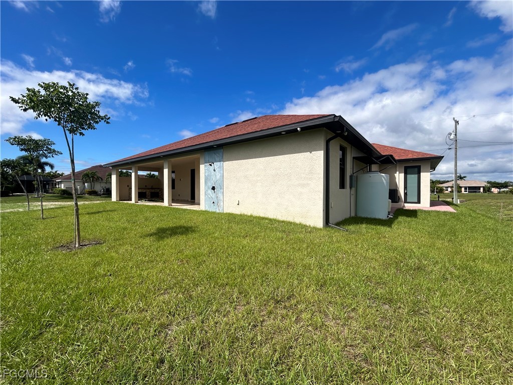 This stunning new construction home features 4 spacious bedrooms and 3 full bathrooms, thoughtfully designed with high-end upgrades throughout. The home offers a large family room perfect for entertaining, a gourmet kitchen with full appliances, electrical pop-up outlets, and a generous summer kitchen for outdoor cooking. Don't forget the built-in camera system, reverse osmosis water filtration, and the outdoor shower. The owner's suite is a luxurious retreat with a soaking tub, dual-head shower, and a modern electric toilet. Additional highlights include built-in closets, an epoxy-coated triple garage, a paver driveway, upgraded landscaping, and an elegant electrical fireplace. The home also comes equipped with a washer and dryer, making it truly move-in ready. This property blends comfort, style, and functionality—ideal for families looking to enjoy modern living in a prime location.