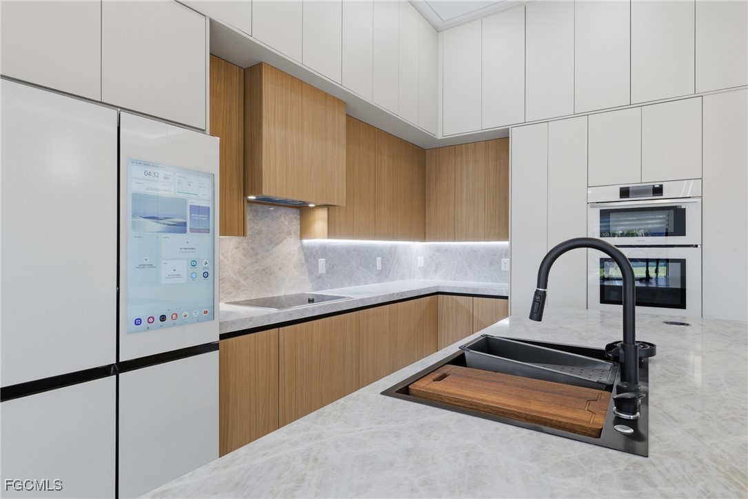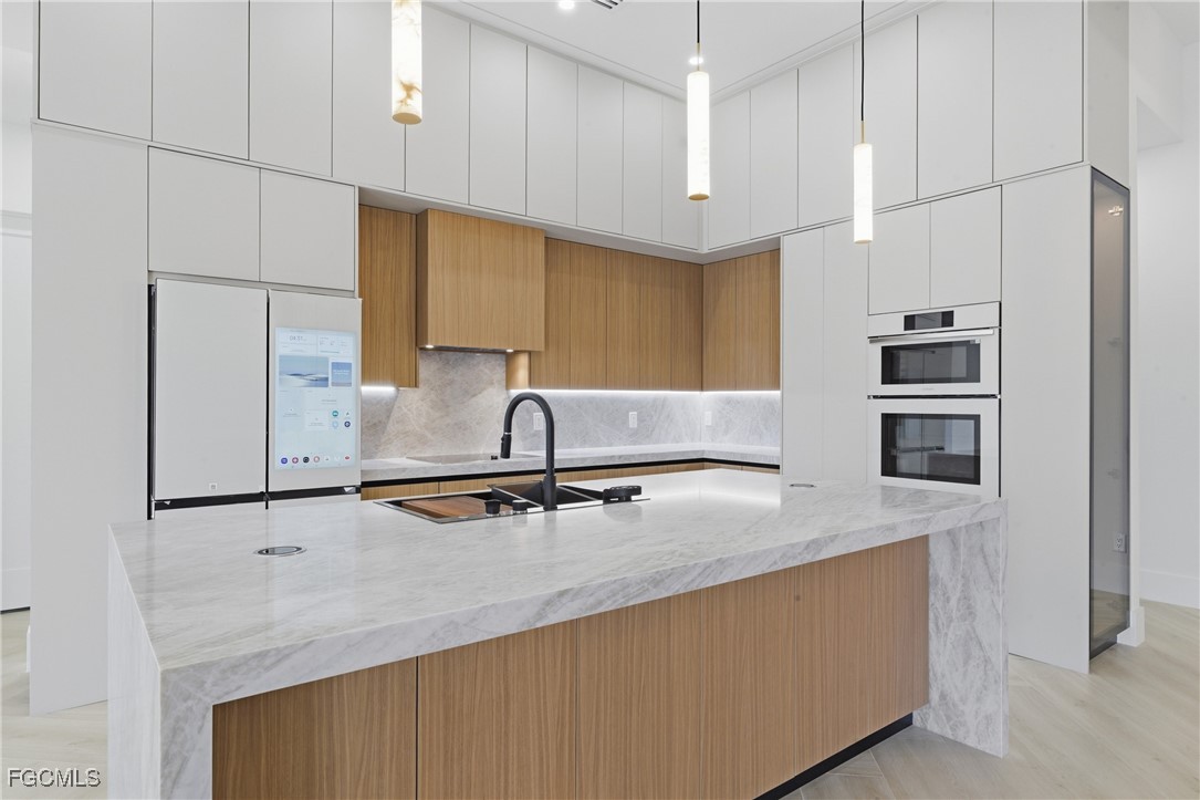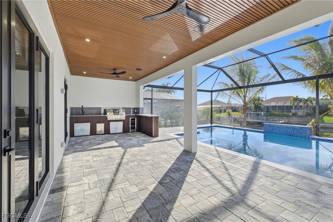 Newly built luxury residence with direct access to the Gulf, located in the Cape Coral area, one of the most desirable neighborhoods to live. Just a few minutes from Shopping Centers, Publix, restaurants and essential services, offering an ideal combination of location, comfort and lifestyle. The property presents an open concept design, integrating living room, dining room and kitchen to create wide, modern spaces full of natural light. Garage for 3 cars with a reflector epoxy. The kitchen has modern appliances and high-end contemporary finishes, high quality cabinet and taj Mahal quartzite. It has impact doors and windows against hurricanes, security camera system, speaker system inside and outside the property, curtains throughout the house. The residence has 4 bedrooms, 3 and a half bathrooms, in addition to an office, all carefully designed and complemented with luxury lamps that bring elegance and sophistication in each environment. The outdoor area is designed for entertainment and enjoyment, with a beautiful pool with spa and waterfall, salt system, equipped with heater and intelligent system that allows you to control the temperature from the phone, providing security, comfort and advanced technology, outdoor kitchen with screen. This property also has an exquisitely designed garden with high and sophisticated palm trees, creating a tropical and exclusive atmosphere. An exceptional opportunity to acquire a completely new property in one of the best areas of Cape Coral.