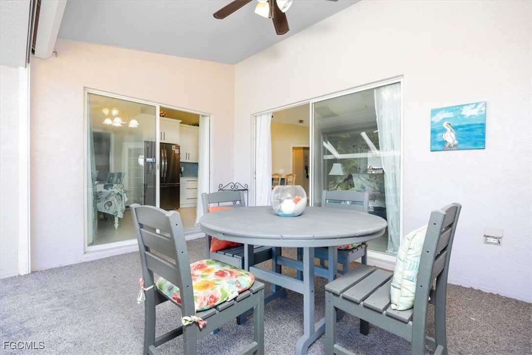 Enjoy Florida outdoor living with the freshwater canal, heated pool, and screened lanai. From your backyard, access Lake Kennedy, Lake Saratoga, Lake Alahambra, and Lake Shamrock. Slider doors provide natural lighting and open space.