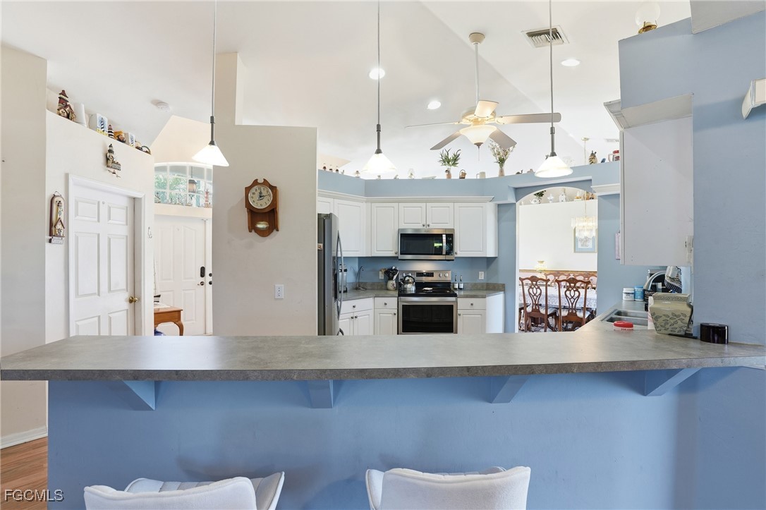 This 4-bedroom, 2-bath single-family home in the Mirror Lakes community offers 1,873 sq ft of living space with a desirable split floorplan that provides privacy and functionality. The home features a mix of carpet and vinyl flooring, single-hung windows, and central electric heating and cooling. A top-of-the-line HVAC system with UV light was seller-installed by an industry professional and is truly top notch, enhancing air quality and overall comfort. Ceiling fans throughout add to the home’s efficiency and livability. Enjoy scenic canal and landscaped views that create a peaceful backdrop for everyday living. The property includes an attached 2-car garage and ample interior space ideal for families, guests, or a home office setup. Conveniently located in Fort Myers with easy access to shopping, dining, schools, and major roadways, this home presents a great opportunity in an established neighborhood.