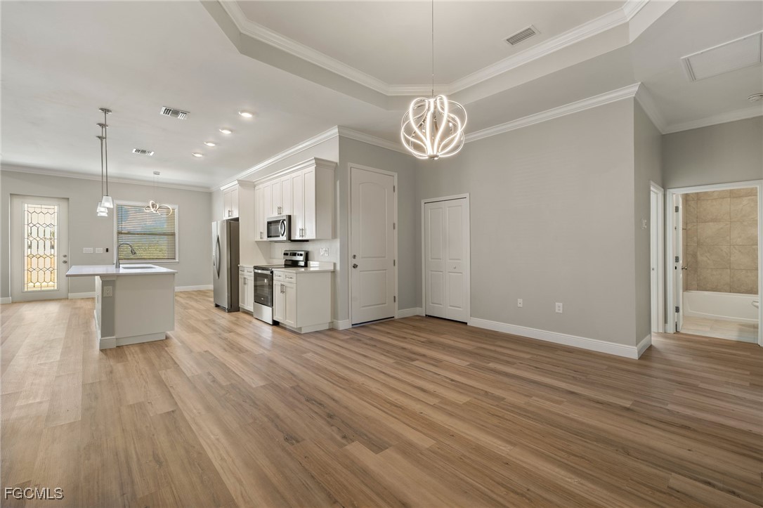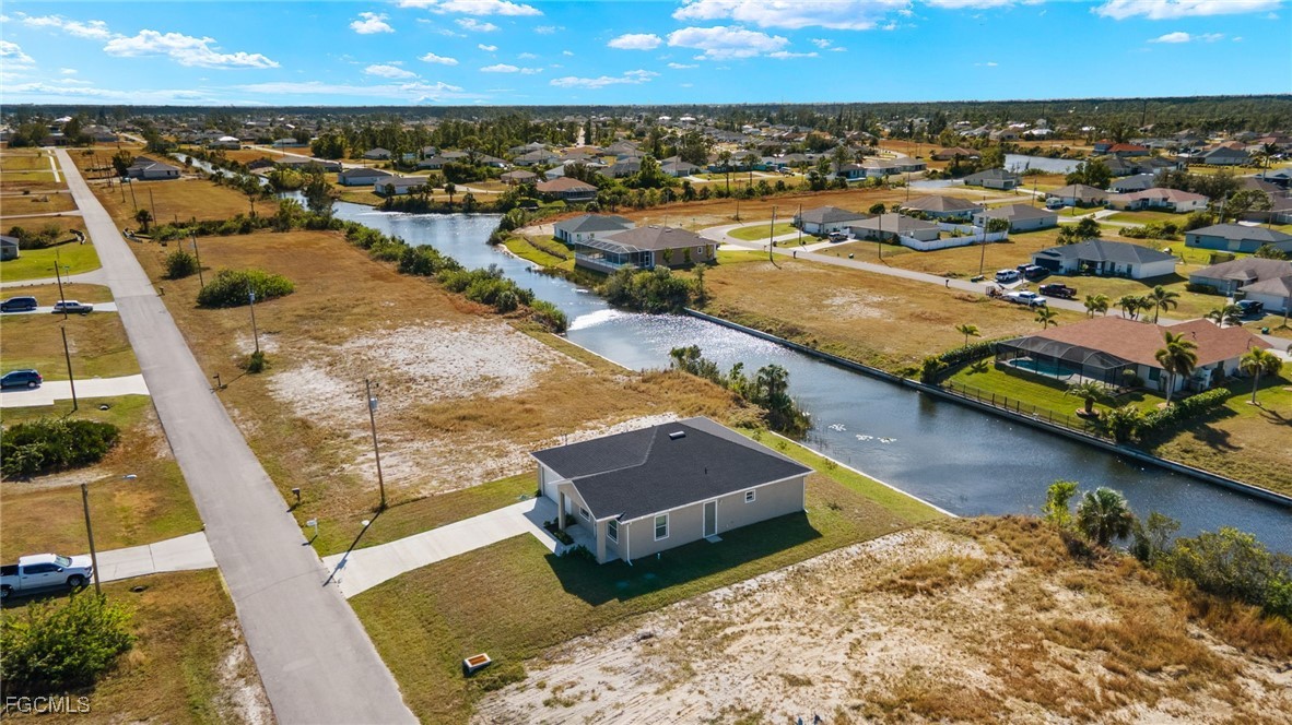 LIKE NEW CONSTRUCTION HOME BUILT 2024 MOVE IN READY... FRESHWATER CANAL - NEW SEAWALL-This home features 4 bedrooms, 3 baths, and a 2-car garage. HURRICANE IMPACT DOORS and WINDOWS AND, NO SHUTTERS REQUIRED! Seamless Gutters! Vinyl flooring throughout. Tray ceilings, wooden cabinets and quartz countertop throughout, brushed nickel hardware, and stainless-steel appliances! 8 ft doors! In the master bedroom you will find a HUGE walk-in closet, dual sinks, and a walk-in shower with Glass Doors! Plenty of room for kids to play or pets to roam!! Stained garage floor! This home is walking distance to Island Coast High School. THIS HOME IS NOT LOCATED IN A FLOOD ZONE. Great location in a quiet neighborhood near 41 and shopping centers.