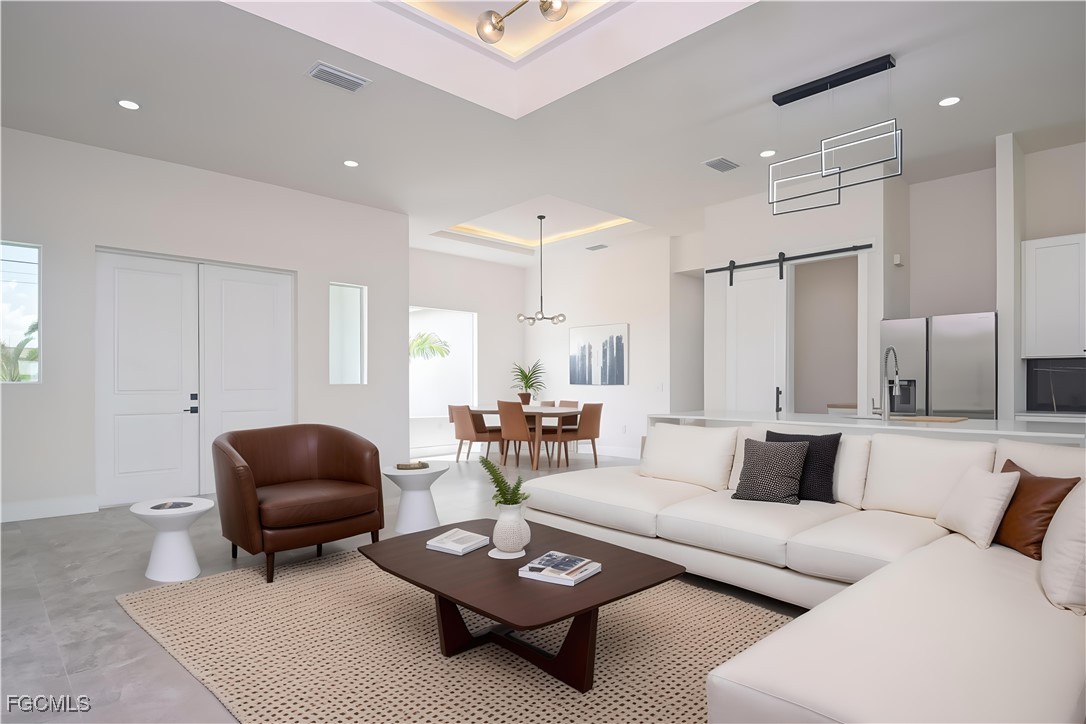 This home features approximately 2,081 square feet of living space with tile flooring throughout and an open-concept design ideal for everyday living and entertaining. The kitchen is thoughtfully designed with custom cabinetry, quartz countertops, stainless steel appliances, and a spacious walk-in pantry. Architectural details include tray ceilings and tasteful modern finishes throughout the home.