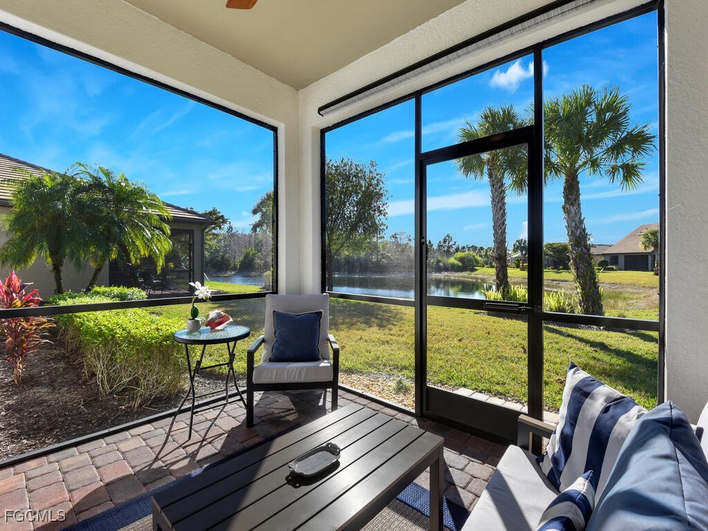 This highly desirable Abbeyville model offers a smartly designed 2-bedroom plus den/flex layout with 2 baths and a 2-car garage, delivering both comfort and versatility in 1,685 square feet of impeccably maintained living space. Built in 2016 and kept in excellent condition, the home features a well-thought-out open concept floor plan filled with amazing natural light and finished in a soft, coastal-inspired color palette. The kitchen and baths showcase cherry raised-panel cabinetry, granite countertops, ample prep space, and a convenient pantry, making everyday living and entertaining effortless. Architectural details elevate the interior, including crown molding throughout the main living areas and primary suite, recessed lighting in the living space and entry, a tray ceiling in the primary retreat, and a stylish shiplap accent wall that adds character and warmth. The spacious primary bath offers dual sinks, a large walk-in shower, and an oversized walk-in closet, while additional closet space throughout the home ensures excellent storage. Enjoy peaceful western-facing lake and preserve views from the large screened lanai, perfect for relaxing at sunset. Additional highlights include an interior laundry room, hurricane protection with manual shutters, a paver driveway, and furnishings that are negotiable. This home blends thoughtful design, quality finishes, and serene views, making it an exceptional opportunity for buyers seeking a move-in-ready property with lasting appeal.