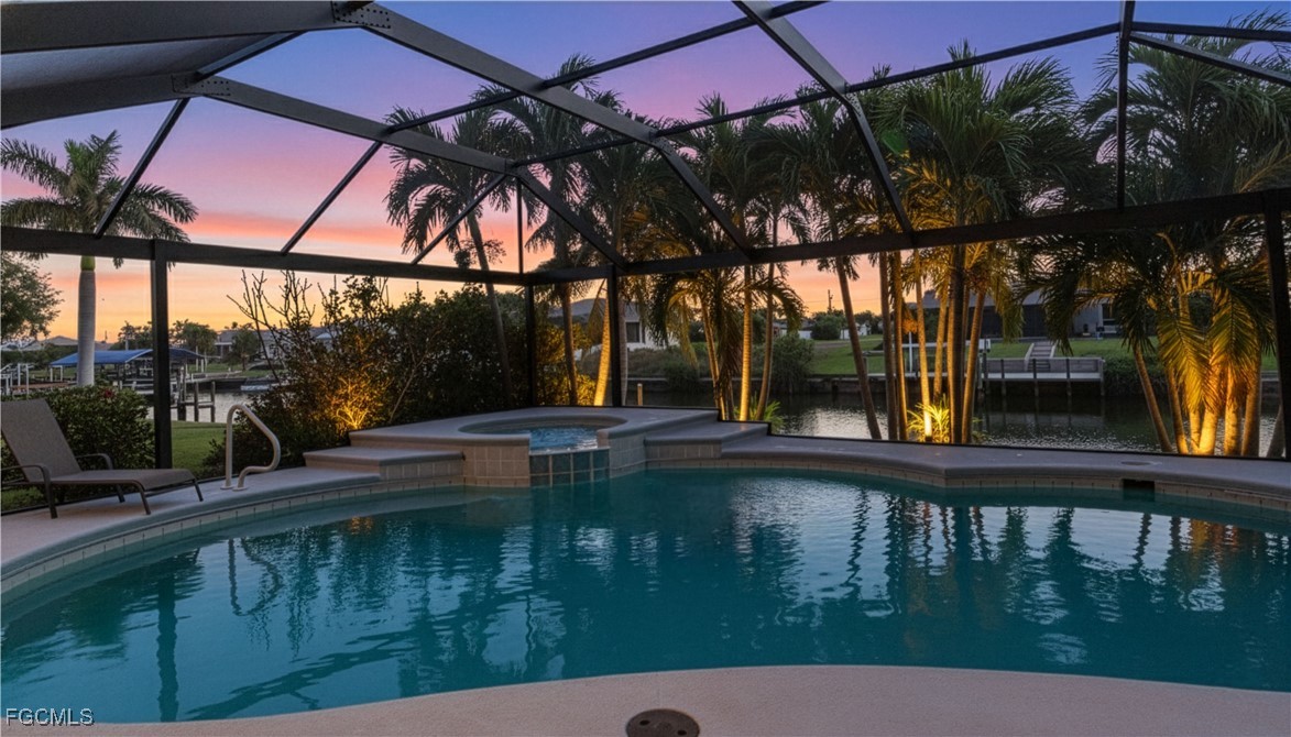 Your waterfront dream begins here! | Welcome to 230 Kamal Parkway. Perfectly positioned on a peaceful Gulf-access canal with desirable southern exposure, this beautifully updated pool and spa home delivers the Florida lifestyle buyers crave—boating, fishing, and tranquil water views right from your backyard. Inside, a spacious split-bedroom floor plan offers 3 bedrooms and 2 bathrooms with formal living and dining areas, plus a bright breakfast nook overlooking the pool. The kitchen was tastefully remodeled in 2025 with epoxy countertops, new backsplash, and abundant cabinetry, creating a functional and inviting space for everyday living and entertaining. Luxury vinyl plank flooring installed in 2025 flows throughout the home, adding warmth and durability. The primary suite serves as a private retreat featuring dual vanities, a large walk-in closet, a soaking tub, separate shower, and water closet. Pocket sliding glass doors open from the living areas to the expansive lanai, creating a seamless indoor-outdoor flow. Recent improvements include a 2021 roof, new panoramic picture-screen pool cage (2024), saltwater pool with heater, newer water heater, and manual metal hurricane shutters for added peace of mind. Outdoors, enjoy a lushly landscaped backyard, sparkling pool and spa, convenient pool bath, and ample green space for pets or play. Located in highly sought-after Southeast Cape Coral near Kamal Parkway, this home offers quick access to Veterans Parkway and the Midpoint Bridge for easy commuting to Fort Myers, along with nearby shopping, dining, parks, and medical facilities. City water and sewer with all assessments paid complete the package. A true boater’s paradise in a prime location—this is waterfront living at its best.