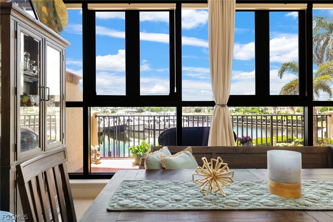 Located in Cape Harbour, Cape Coral's premier Florida lifestyle community, this development offers a wide range of amenities and conveniences that make it a favorite dining and boating destination for locals. Restaurants such as Rumrunners, Fathoms, and The French Press are just a short walk from your front door, providing waterfront views while you dine. Boating enthusiasts can take advantage of the marina's many slips for lease or rent a boat for occasional use, eliminating the hassle of ownership. Residents have exclusive access to amenities such as a private gym, two pools, a community clubhouse with kitchen, Outdoor grill area with covered seating, and a multi-level parking garage. This condo is move-in ready, with recently updated kitchens, bathrooms, appliances, A/C, water heater, and a 50-year metal roof, ensuring low maintenance and peace of mind for residents. This unit is also unique because of it's additional dinning area with a view of the marina as well as its extended patio. Experience the ultimate Florida lifestyle at Cape Harbour.