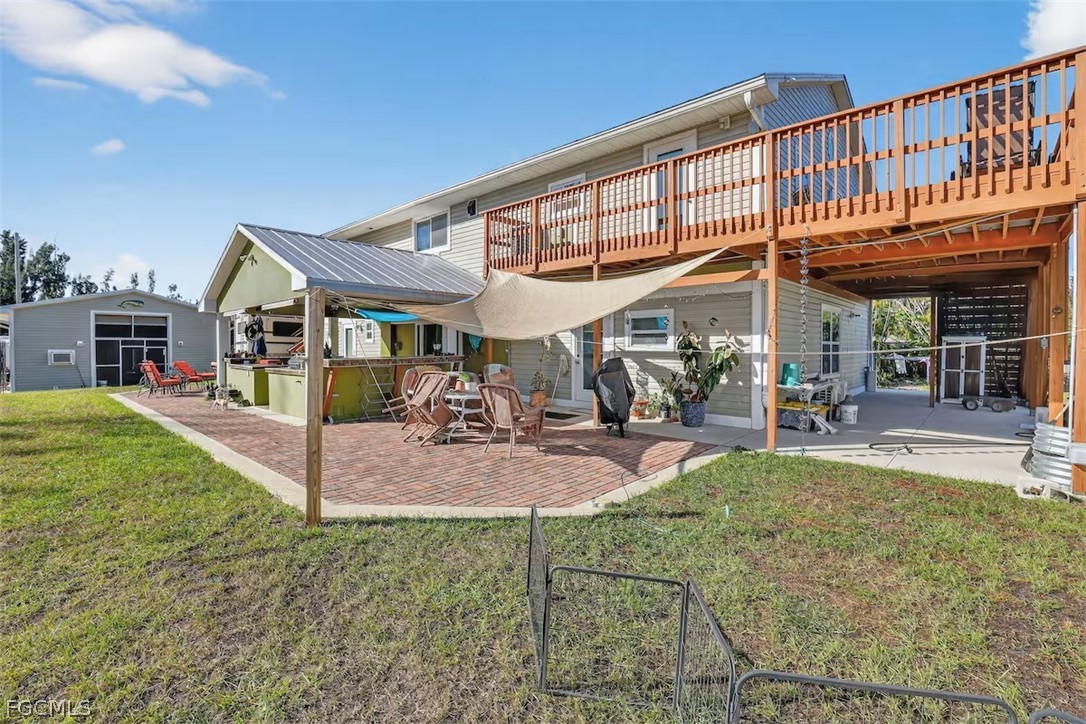 ONE OF A KIND! Custom built home perfectly located in Cape Coral close to everything but still with that country feel and privacy! This 5 bedroom 5 bath two story home is perfect for the large family looking for plenty of space to grow inside and out. Home boasts tile and wood plank flooring no carpet, customized kitchen cabinets and counters, updated bathrooms, lighting and fans. Primary bathroom offers spa like shower with dual shower heads and bench seat. Dual sinks in bath too. Beautiful relaxing decking overlooks a wooded area providing tranquility on both sides of the home . Downstairs has a wonderful patio with a large covered grill area perfect for barbecues and entertaining. The lot size is over a half acre 27,966 feet and is zoned agricultural use. The property can be used for RV, trailers, and even farm animals if so desired. The huge custom built unattached garage with storage loft measures 36 ft x 28 ft with two 12 ft doors on either side allowing large vehicles to enter. Garage would be a great for a workshop, business vehicle area, boat or car storage,man cave or possibly even a barn. All the utilities are in place for whatever you decide. Owner has built the property 7 feet above sea level for extra protection. The windows and doors are hurricane proof rated and the roof metal both withstanding hurricane rains & winds without damage. The home & garage had no damage from the last 3 hurricanes! The location is so close to the Pine Island corridor offers an abundance of stores, restaurants, entertainment, recreation, health care, schools and much more. The boating and fishing villages of Matlacha and St. James City are a few mile drive. There is even a public boat ramp around the corner. Come see this diamond in the rough. ITS TRULY ONE OF A KIND!
