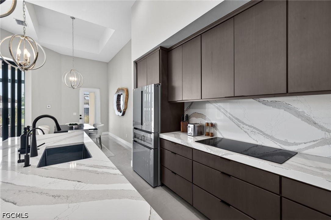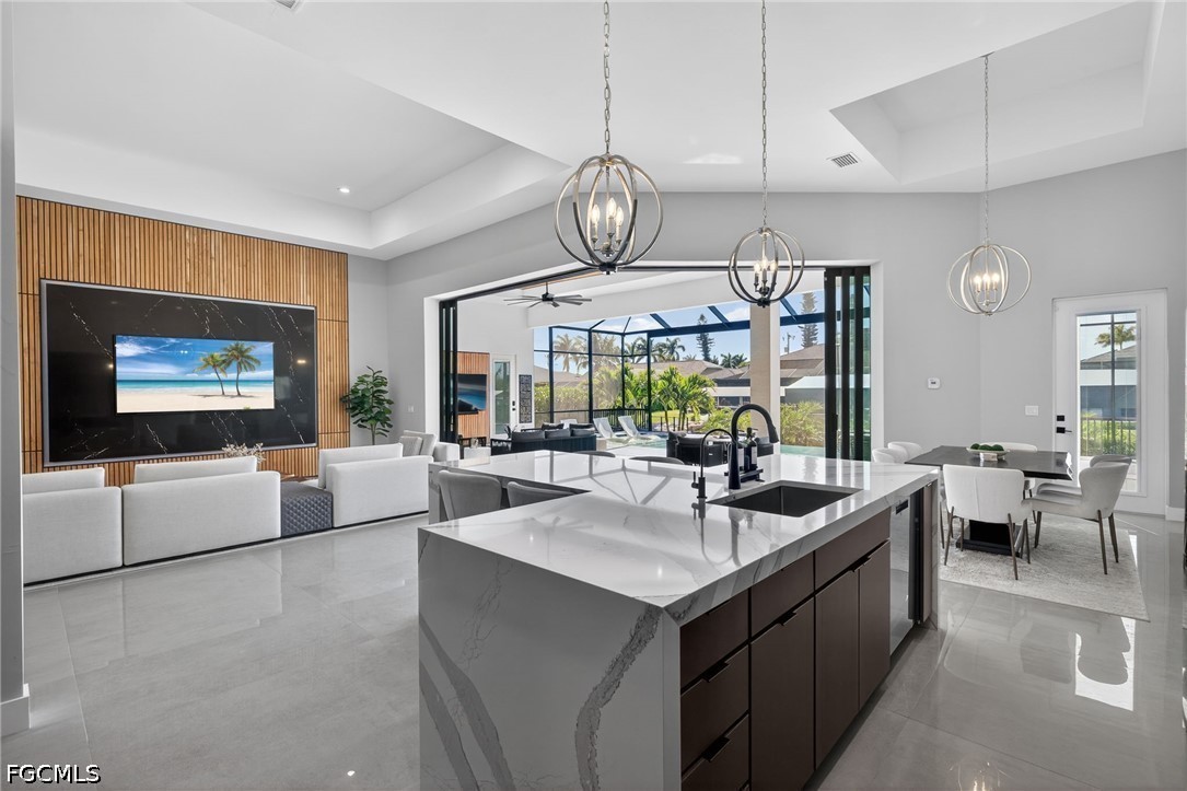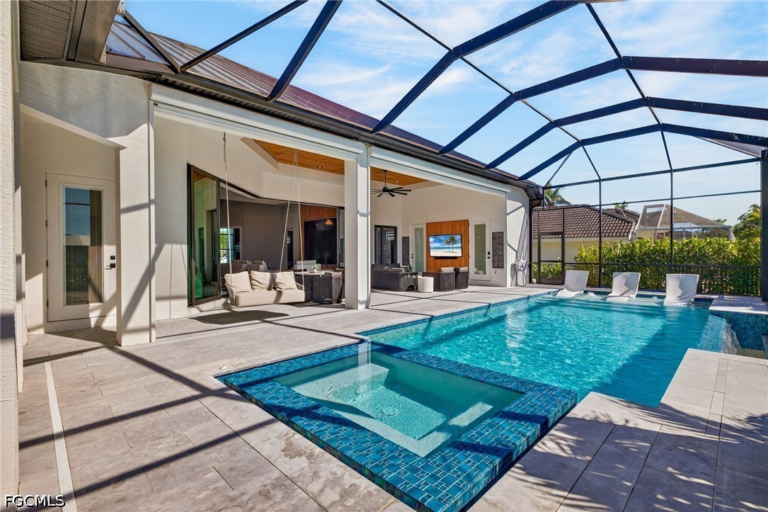 Experience elevated waterfront living in this custom, like-new 4-bedroom, 3-bathroom residence, ideally located in the highly sought-after Four Mile Cove. Thoughtfully designed with luxury finishes, soaring ceilings, and modern coastal elegance throughout, this home is offered fully furnished with high-end furniture—making it completely turnkey so you can simply arrive with your suitcase and begin enjoying the Florida lifestyle. The bright, open-concept floor plan is ideal for both everyday living and entertaining. Very tall sliding glass doors and high ceilings flood the home with natural light, seamlessly blending indoor and outdoor spaces. At the center of the home, the gourmet chef’s kitchen impresses with premium finishes, abundant cabinetry, and a hidden walk-in pantry—delivering both functionality and a clean, sophisticated aesthetic. The primary suite serves as a private retreat, featuring direct lanai access and a beautifully designed spa-like bathroom with upscale finishes. A massive custom walk-in closet completes the suite, offering exceptional storage with refined style. Designed for both luxury and resilience, the home features hurricane impact windows and doors along with a durable metal roof, offering superior storm protection, energy efficiency, and long-term peace of mind. Step outside to your own private outdoor retreat, where a heated pool and spa overlook the serene canal. The spacious covered outdoor living area is designed for true Florida living, complete with a fully equipped outdoor kitchen and island—perfect for entertaining while enjoying peaceful waterfront views. Lush new landscaping enhances the home’s tropical curb appeal. Boating enthusiasts will appreciate the brand-new dock with a 10,000-pound lift, offering Gulf access in under 15 minutes with only one bridge—an ideal setup for enjoying Southwest Florida’s renowned waterways. Additional features include a whole-home security system with HD cameras and a new water tank, further adding to the home’s move-in-ready convenience. This property also boasts a proven track record as a successful vacation rental, with consistent income, reservations throughout the year, and bookings already secured into the new year—all of which can transfer to the new owner. Ideally located just minutes from shopping, dining, and entertainment, this exceptional waterfront home in Four Mile Cove delivers the perfect blend of refined design, outdoor living, and boating lifestyle.