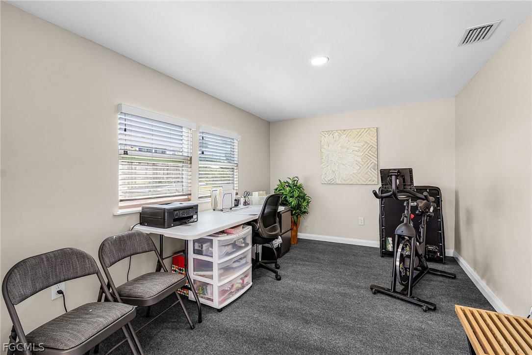 Flexible living space is offered with the flex room just off the screened porch. This space is connected to the central HVAC system and finished with luxury vinyl plank flooring, making it perfect for a guest room, home gym, artist’s studio, or office.